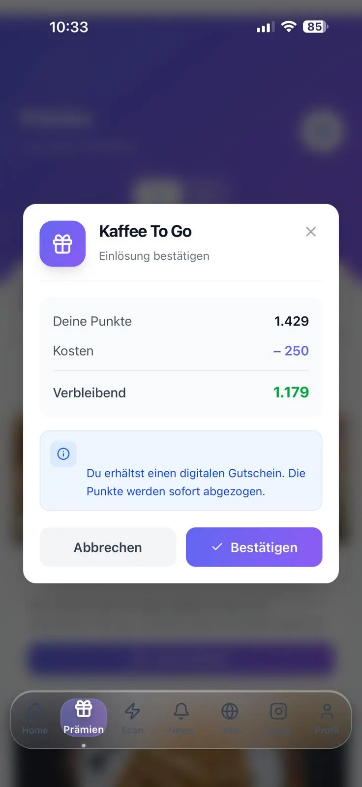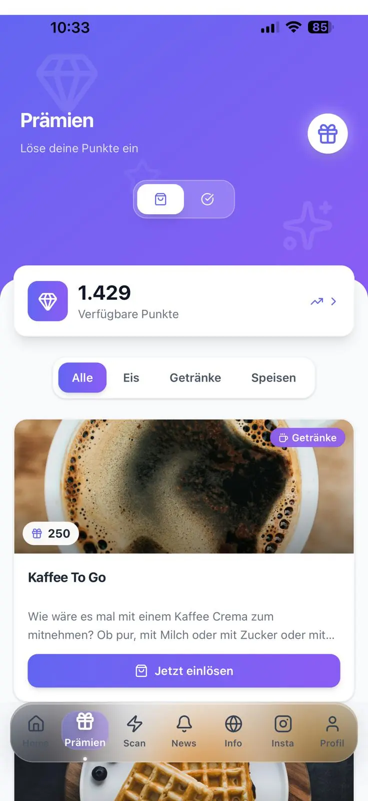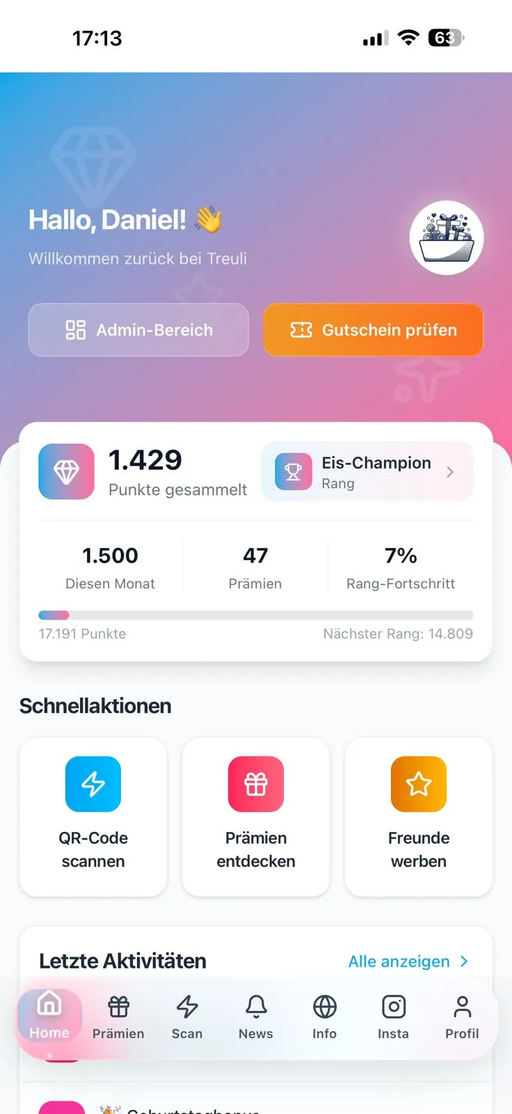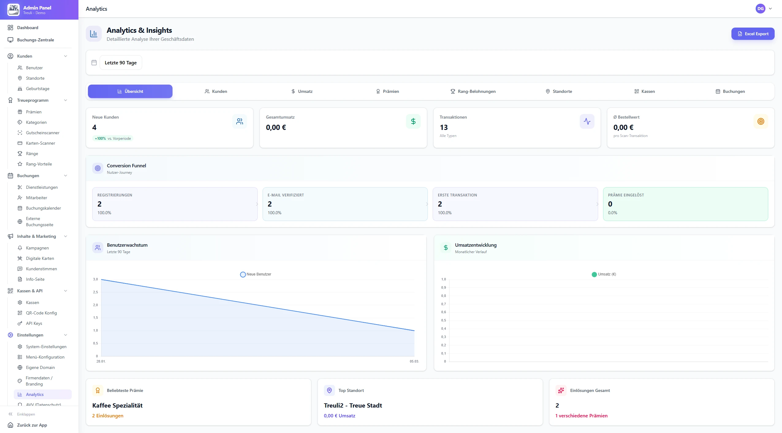Probar gratis 14 díasLos QR de los tickets ya los imprime tu caja por normativa TSE (Alemania) o RKSV (Austria). Registras tu caja una vez en Treuli, el cliente escanea el ticket y los puntos aparecen en su cuenta. Funciona en el navegador, sin descarga de app.