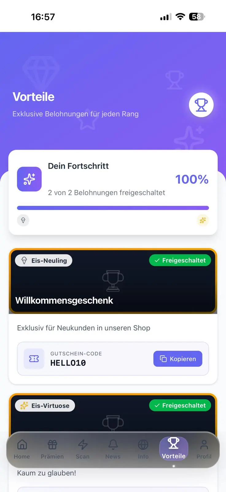 Los clientes Gold ven cosas que los clientes Bronze no ven. Códigos de descuento exclusivos, enlaces de socios, comisiones de afiliados — desbloqueados automáticamente.